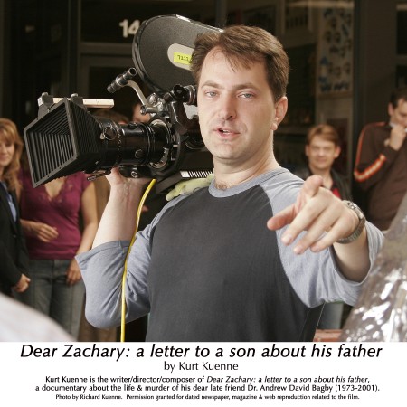Filmem zaczął się interesować, jak tylko był wystarczająco silny, aby móc trzymac kamerę w ręku. W wieku siedmiu lat poznał Andrew Bagby'ego, którego sportretował w filmie "Dear Zachary: A Letter to a Son About His Father". Kurt Kuenne jest reżyserem filmów fabularnych i dokumentalnych. Dorastał w Silicon Valley.